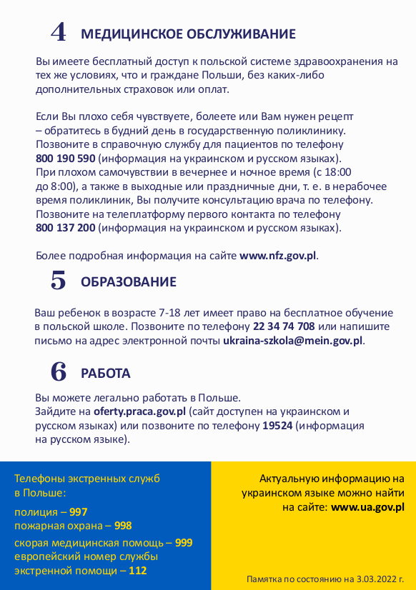 Если Вам негде ночевать, Вы голодны, Вам нужна медицинская помощь, то сразу после пересечения границы отправляйтесь в пункт приема беженцев. Там Вы получите немедленную помощь,