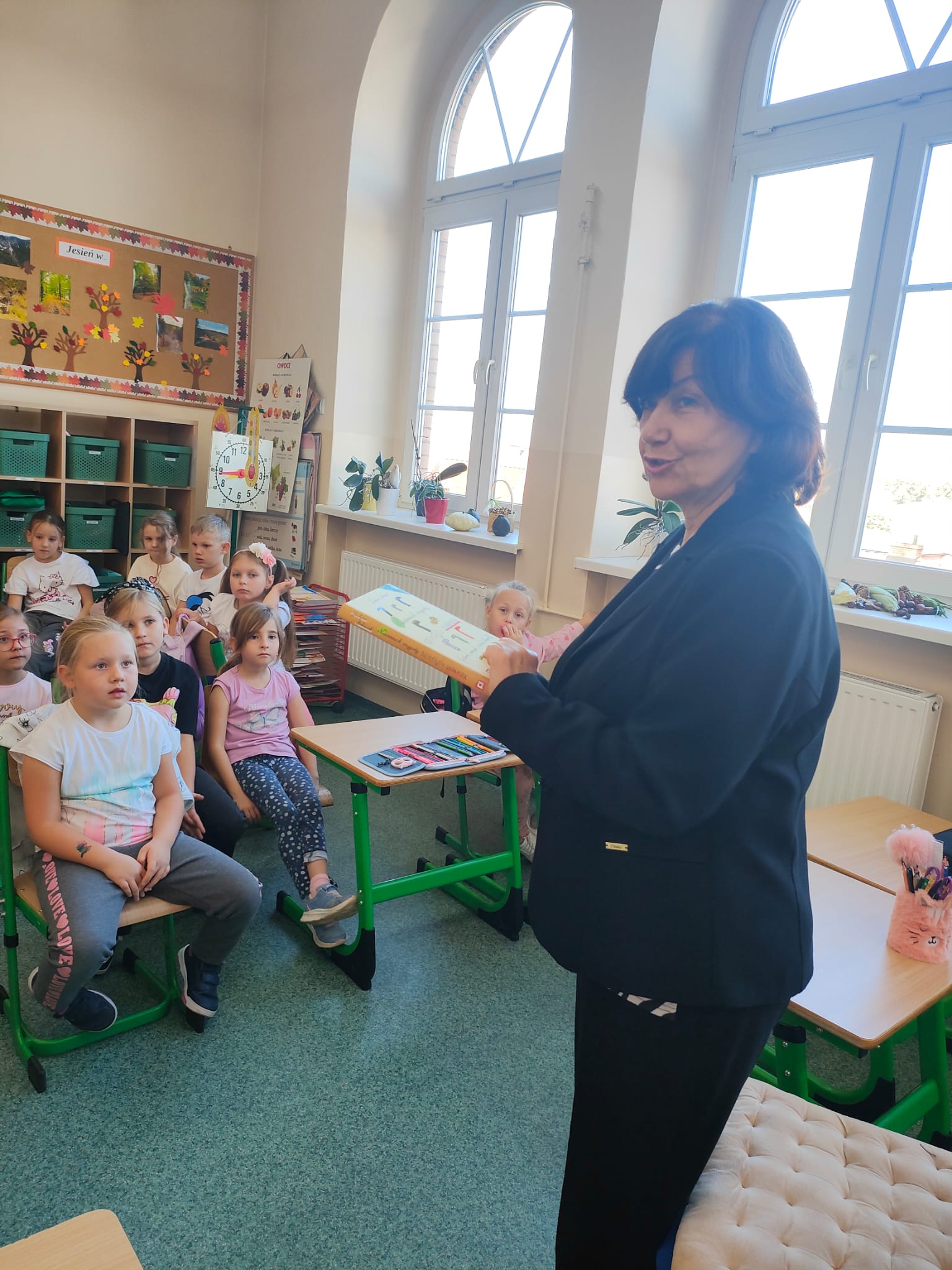 29 września w naszej bibliotece szkolnej obchodziliśmy Ogólnopolski Dzień Głośnego Czytania. Pomysł obchodów powstał w 2001 r. z inicjatywy Polskiej Izby Książki, a celem akcji jest promowanie czytelnictwa wśród dzieci i młodzieży, rozwijanie kompetencji społecznych i emocjonalnych. Uczniów klas pierwszych w tym dniu odwiedziła Pani Krystyna Kozak-Kamińska - kierownik Dolnośląskiej Biblioteki Pedagogicznej w Lubaniu.